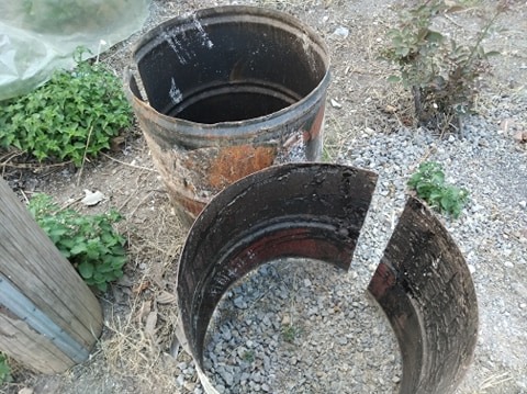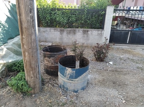 Πεταμένα βαρέλια έξω από αυλή σπιτιού: